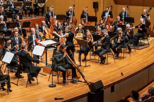 The concert also included an original composition by William Barton, 'Sky Songs', in collaboration with other Indigenous players and the orchestra, following Peter Sculthorpe’s 'Kakadu', well-known for its illustrious portrait of Australia's landscape and by using a unique combination of tonality and orchestral colour. More mesmerizing was William's opening Indigenous-style vocal solo from the audience as he made his way to the stage, a piece written when he was in his teens, evoking a real 'shimmer' down one's spine. It brought tears to my eyes.