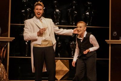 Elements of this production could so easily not work.  In lesser hands, they would not.  That they do work is what makes this production so provocative and stimulating.  Director Peter Evans has a ‘concept’ and while a director’s concept can take priority and obscure a text, here it is illuminated.  The action all takes place in what looks like the foyer of some vulgar hotel trying too hard to look luxurious – black marble, gold lamps, ‘period’ furniture.  Anna Cordingley’s design suggests that these titled people are temporary interlopers, temporarily powerful, in a tacky milieu.  Furthermore, no one leaves this space: when actors are not directly involved in a scene, they sit or lounge about, blank, waiting.  You can’t help thinking they are trapped.  (Shades of Buñuel’s Exterminating Angel.)  SteveToulmin’s music and Michael Tolsuta’s subtle sound design increase the sense of no escape from uncertainty, threat or doom.