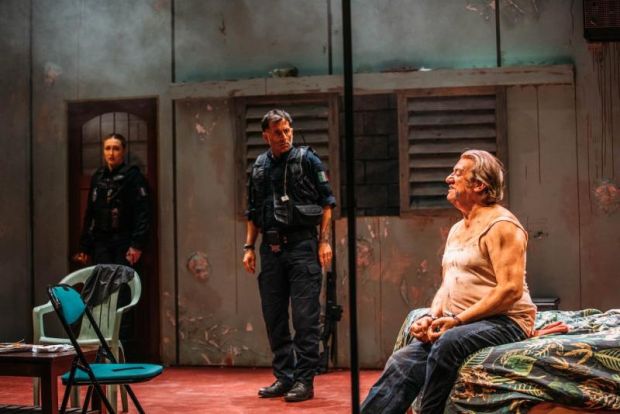 In the lead role as El Ticho, PJ Williams is the calm in the eye of the storm. Relaxed and even avuncular towards the officers as they brandish guns at him, his genial manner belies his sheer ruthlessness. “Ticho” is a diminutive of his name Patricio, but it also sounds like the English word “teach”, and indeed he seems to be something of a teacher. Calm and pragmatic, playing on Angela’s and Rómulo’s emotional weaknesses, it’s hard to tell at any time who has the power in the room, superior officer Angela, crazy-brave Rómulo, or the old man in handcuffs who they are acutely aware has been responsible for countless deaths, actively through murder or passively through overdose.