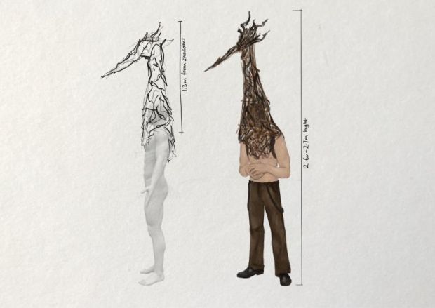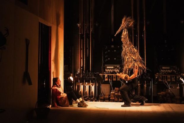 “The Stork was an eerie, towering figure looming over the actors like a childhood nightmare,” Edison elaborated. “It stood three metres tall, made of sticks with a beak-like protrusion for the face. The materials used for The Stork were the same sticks that the children interacted with onstage, the creature emerging from their playful imaginations.”