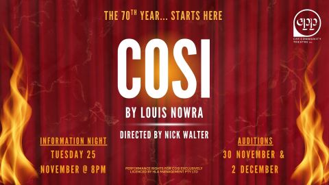 Set in a psychiatric facility, Cosi is a play about friendship, romance, community and difference. It’s 1971 and Australia is protesting the war in Vietnam. But inside the facility, the resident patients are listening to Mozart, learning their lines and occasionally skipping their medication. It’s art, it’s mayhem, it’s a wonderful roller coaster all the way to opening night!