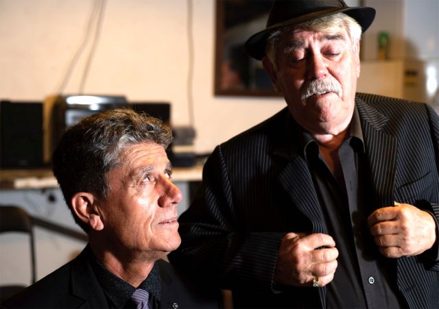 Images: “Boss of all bosses” Mickey (Gino Cataldo, left) and his strong-arm sidekick Bill (Rex Gray); Successful criminal Anne Parker (Andrea von Bertouch, left) and husband Frankie (James Hagan) share a moment & Jackson Wimhurst, left, is used stolen car salesman Ray, working with middle man Charlie Boggs (Tom Rees). Photographer: Rachel Bartlett.
