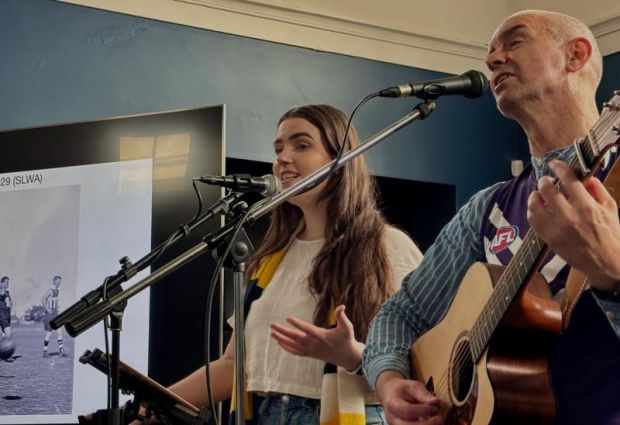 ‘Mary of York’ is particularly special, as it is about Bethany’s great, great, great grandmother’s emigration to WA from Ireland, and includes photos of the lady herself, while ‘Moondyne Joe’ (about the famous 19th century WA bush ranger and escape artist) was especially poignant, given that Moondyne Joe was tried in Fremantle Court a number of times, if not in the room where we were gathered, certainly in the Police Court next door, where we waited before the show. Five other songs follow, including the very moving ‘Mistake Creek’ (about the historic massacres of indigenous Australians) which contrasts a sad song with beautiful images of indigenous art.