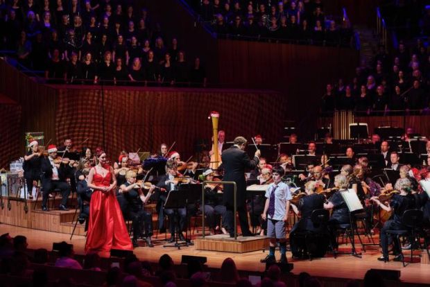 The very remarkable Brett Weymark conducts over 500 voices, 100 of them from the Philharmonia’s Symphony Choir, 71 from the VOX Choir and 347 members of the Christmas Choir, singers from all over Sydney who answer Weymak’s invitation to join the Philharmonia for this special Christmas concert. They are accompanied by the seventy strong Philharmonia Orchestra with David Drury high above them at the grand organ.