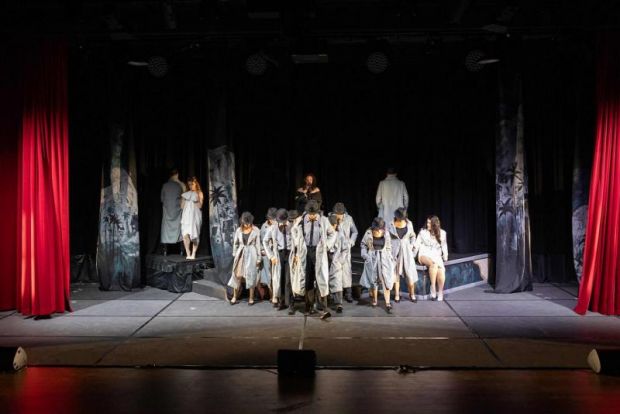 First-time director with Hornsby, Logan McArthur does a stellar job with this ambitious and multifaceted musical, making full use of the stage and creating intimate pockets for key scenes. While the stage crew’s nimble handling of the set deserves praise, some transitions in Act I briefly interrupted the flow, and the first act itself is slow to get going, at times seeming to lack vibrancy and conviction. By contrast, Act II transitions are cleverly underscored with music or voiceovers, allowing scenes to melt seamlessly into one another — a clear sign of McArthur’s growing assurance in balancing pace and storytelling rhythm.