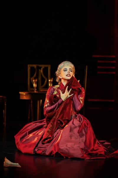 The roles are physically demanding and there are four sets of lead performers. I wish I could see this production four times to see them all, but the cast I saw on 7 October were outstanding. As Marquise de Merteuil, Heidi Freeman owns the stage. She effortlessly portrays Merteuil’s despicable power and sexual prowess. D’Arcy Brazier’s Valmont has a silent film star’s seething sexuality and expressive acting – from grimaces at the older ladies, to dismissive sighs concealing deeper feelings, his Valmont commands attention. Libby-Rose Niederer’s innocent Cecile is a perfect white rose, and she expertly conveys her burgeoning feelings for her charming piano teacher, Chevalier Danceny – a strong performance by Ivan Surodeev as another innocent tainted by Valmont’s influence. As Madame de Tourvel, Chiara Gonzalez stands out as Valmont’s true love interest.