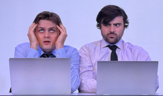 Perpetually late and haphazard, Lucas, expertly portrayed by Alex Comstock, is struggling to finish a project that is due today, such to the annoyance of the more precise and serious Henry, played with exactness by T. Mutta Beilby. Locked in their shared office space, the company announces that the end of the world will happen in half an hour, but they are not permitted to leave work.