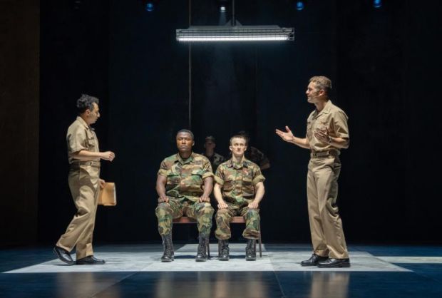 Perhaps the production’s most striking achievement lies in its evocation of collective behaviour. Evans draws his Marines with an almost animalistic vocal quality; when on duty, their clipped responses echo like a dog pack’s bark; a chilling auditory reminder of the culture the play dissects.