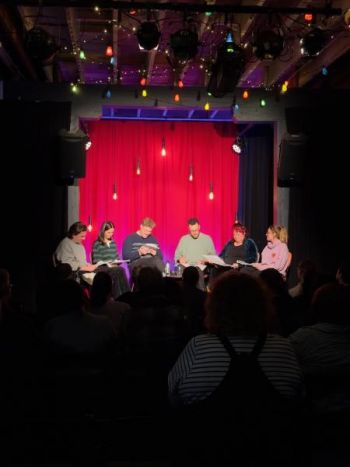 Petite Tiana Hogben, the clown, produces funny, squeaky toys from her bag, cheerfully accepting the fact that the others don’t quite think she belongs... She structures things by trying out topics for a comedy Q&A - questions like, who are your comedy influencers, what’s your favourite joke, is there a joke you regret using, and so on. Our sold-out audience included a wide range of ages – or ‘demographics’ – so older folks enjoyed references to comics and TV shows of which the younger people had never heard.