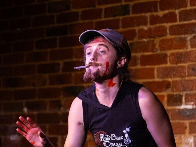 Loserland is a solo character comedy performed by Melbourne based physical comedian Michele Owen. She performs to a full room in The Cellar at The Motley Bauhaus. The Motley Bauhaus is truly living up to its modus operandi of being a hub venue for fringe artists. Even at 6pm on a sunny Tuesday evening the venue has a buzz. The Cellar stage that Michele performs on is less than one metre deep, the room is small, so the audience, by necessity, is directly involved in the show. This performer does a fine job at balancing action on stage and soft invitations for audience participation. She does not rely on the audience to completely carry the show - a sign of a good character clown.