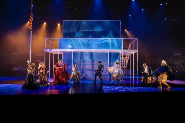The fundamental and pivotal relationship between Benedick (Fayssal Bazzi) and Beatrice (Alison Bell) is kept at the forefront of this production as they process their own feelings and the discriminatory attitudes that fuel their ambivalence towards each other, and to the notions of love and romance. This allows both the drama and the humour to operate alongside each other in a very smooth and seamless manner.