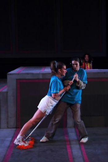 The play was developed through Theatre Works ‘Fresh Works’ program and with the production Barratt has some brilliant collaborators – Elyssa Barratt as co-choreographer, Josh McNeil for set and costumes, Sophia Jargovic and John Sharp for sound and competition, and there is Tom Vulcan’s always fine lighting. But she also has had top class dramaturgs, Rosa Ablett-Johnstone and the inimitable Belle Hansen. But I guess that even they could not mess with the arbitrary premise or the trampolines.