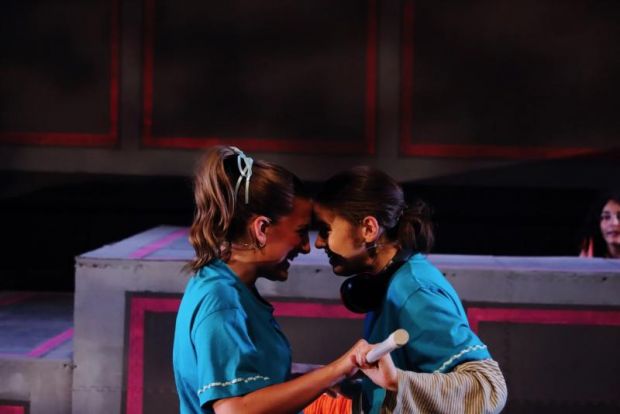 Some staff are not interested in the ghost story idea; for others, it’s quite beyond them. But one, Mary (Gabrielle Ward), seizes on the idea – and for the rest of the play she’s at work: she scribbles in a scrappy notebook, revising, discarding. At times she’s inspired, at others despairing... and quoting – or is it channelling? – Mary Shelley’s novel Frankenstein or from Mary Shelley’s personal journals – even while being harassed – sometimes physically - or just interrupted by other employees jealous Percy (Bek Schilling), Byron (Eleanor Golding), muscular Claire (Sophie Graham Jones) or John (Zoë Wakelin).