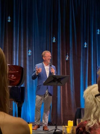 At the piano, Luke Volker provides accompaniment of real polish and flexibility. His playing has a conversational quality to it: responsive, stylistically fluent, rhythmically alive and unfussy in the best sense. He supports rather than dominates, shaping the room’s confidence with clear musical cues and an instinctive feel for collaborative performance. His rapport with Barry-Smith also helps keep the tone warm and grounded, which matters enormously in an event where the audience is also the ensemble.