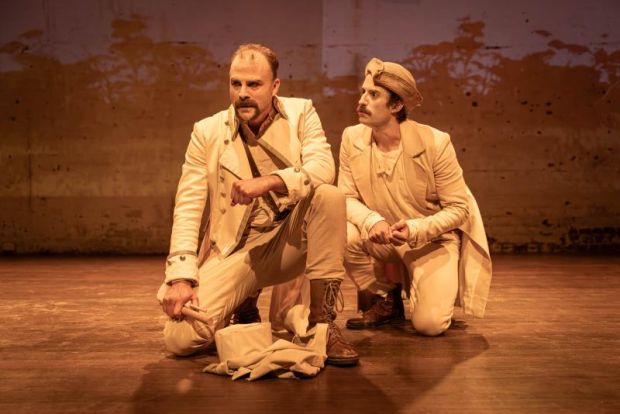 Observer and early anthropologist Dr Anthony Wilkins (Kevin Dee) maintains a calm objectivity and minimises difficulties by studying maps and taking notes, his blinkered vision suggested by his sunglasses. All are fretting and frustrated at the practical uncertainties of their mission, their incomprehension of the ‘natives’ and this unfamiliar, forbidding – to them - country. They are there, of course, to open the country for the Empire – and there is, really, only one way to do that. Shades here of Conrad’s Heart of Darkness or Outpost of Empire in which greed, alienation and fear turn the Europeans to hatred and violence.