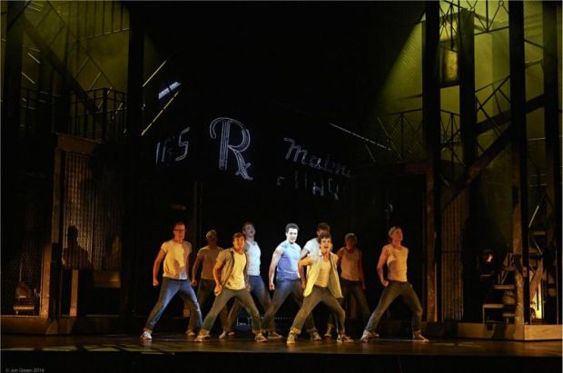 Steve Nolan's set is a complex multi-level design of terraces and fire escapes that rotate to provide distinct locations. Cleverly designed, the set has its own effective choreography and is used intrinsically throughout the show.