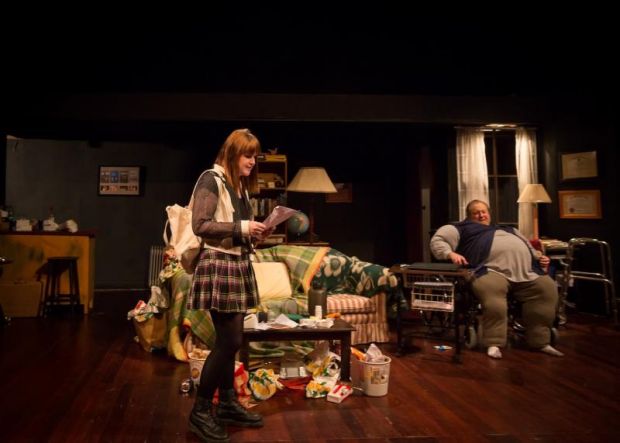 The play centres around Charlie (Sam Wiseman), a morbidly obese 600 pound man, who works online as a writing tutor, essentially trapped in his house and his own body. His only friend is his nurse Liz (Annie Matsouliadis), who regularly visits. He is deteriorating in front of us, with complications from his size and congestive heart failure and refuses to visit the hospital. We are witnessing the last week of his life- a tragedy of his own making, the reasons for which we understand more fully as the play unfolds.