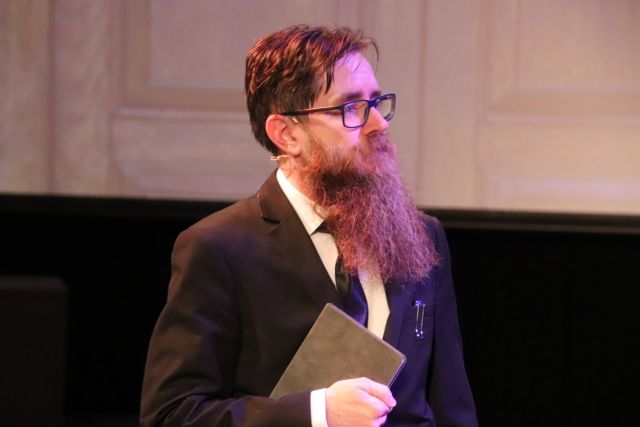 The set (by Carole Dhu) was created with simple projections and carry on furnishings (love the marble fireplace), creating a room in chambers and the court room, with basic but effective lighting by Angela Edwards. Costumes, apart from a couple of anachronisms, were well chosen for period and character by Cathy Puzey, MMDC and Carole Dhu.