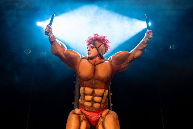 Yet again, Spinning Plates takes an allusive tale where an animal is a catalyst and pushes imagination and excess to an absurd limit. Dann Barber’s set is, appropriately, a gladiatorial arena and the one ring of a scrappy circus. Barber’s and director Alexandra Aldrich’s costumes – brilliantly made up by Christine Milton – plus Aldrich’s absurd wigs - mix styles and references to enrich the play’s surface story of ambition and its multiple metaphors for the forces arrayed against it.