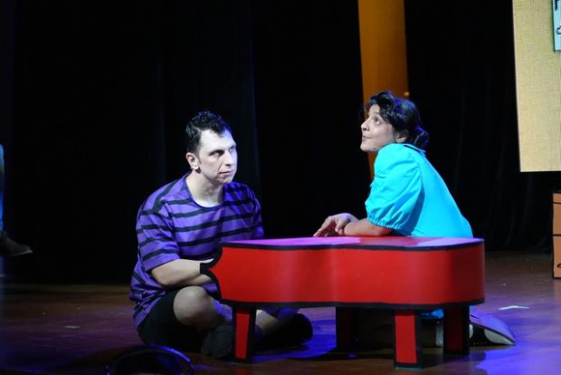 Christopher Melotti as Schroeder dwarfs his little toy piano as he pays tribute to Beethoven. Melotti’s expressive face and careful control of the character find that extraordinary obsessiveness that kids develop for the things that become special to them.
