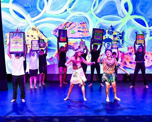 It was clear that this production was very much a team effort with two assistant directors, Simone Hall and Kylie Isaia, and no less than 5 choreographers. Student involvement was also clear, with much of the projected background artwork being completed by students, and the fabulous monster masks also created by primary schoolers,